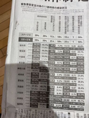 大阪府などで緊急事態宣言が出されて久しい。今日の毎日新聞から各都府県の指標を紹介しておく。 比較して明白に悪化はしていないが、大阪府の指標は相変わらずステージ4に該当するものが多い。他の都府県も全面的にステージ3になっているようでもない。報道…