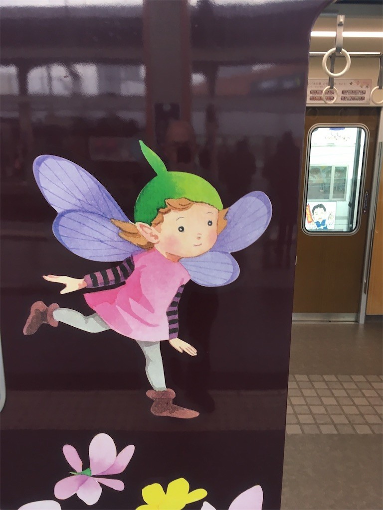 朝に阪急電車を降りると、対面のホームにラッピング電車が止まっていた。といってもSNOOPYがあったりもするが、初めて見る絵柄。